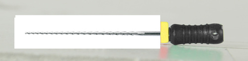 Steril K-fil av nickel titan med filstopp och färgkodat plastskaft.
