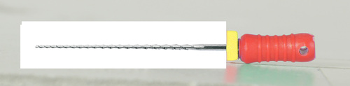 Steril K-fil av nickel titan med filstopp och färgkodat plastskaft.