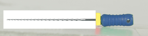 Steril K-fil av nickel titan med filstopp och färgkodat plastskaft.