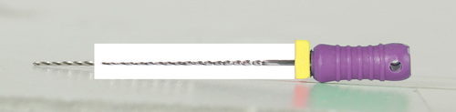 Steril rotkanalsfil av rostfritt stål med filstopp och färgkodat skaft.