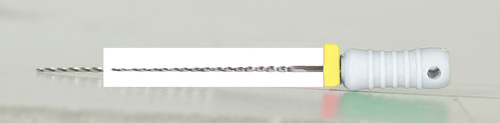 Steril rotkanalsfil av rostfritt stål med filstopp och färgkodat skaft.
