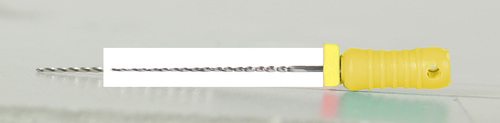 Steril rotkanalsfil av rostfritt stål med filstopp och färgkodat skaft.
