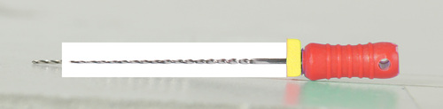 Steril rotkanalsfil av rostfritt stål med filstopp och färgkodat skaft.