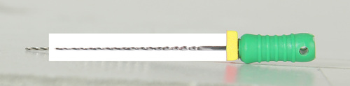Steril rotkanalsfil av rostfritt stål med filstopp och färgkodat skaft.