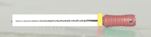 Steril rotkanalsfil av rostfritt stål med filstopp och färgkodat skaft.