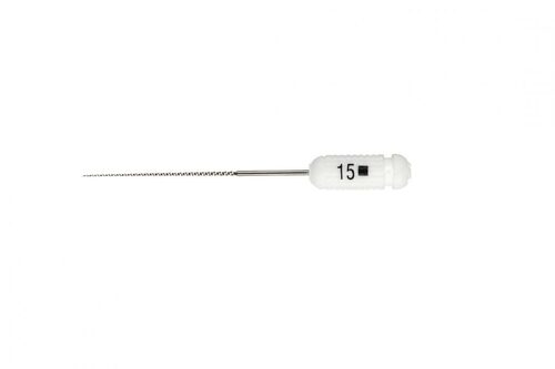 Steril rotkanalsfil med utmärkt flexibilitet i svenskt stål och med färgat plastskaft och filstopp.