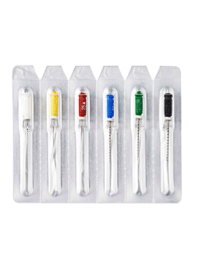 Rotkanalsfil i rostfritt svenskt stål och filstopp med öppen spiraldesign med tre skäreggar