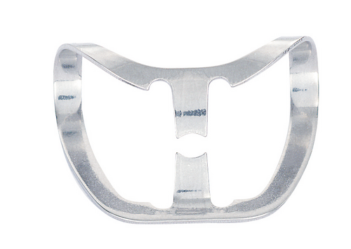 Placera först klammern intraoralt och sträck sedan kofferdammen över klammer och tand. Markderade med ett "W" för Wingless.
