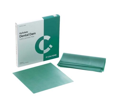 Grön puderfri kofferdamduk av latex med lågt proteininnehåll.