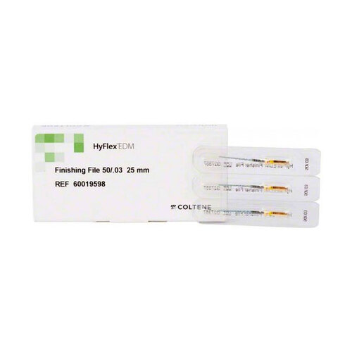 Maskinellt roterande finisheringsfilar av nickel-titan. Har en specialhärdad yta som gör dom extremt böjliga och hållbara samt har ett kontrollerat formminne som följer kanalens anatomi. Finisheringsfil 50/.03 vidgar den apikala delen av rotkanalen. Längd 25 mm.