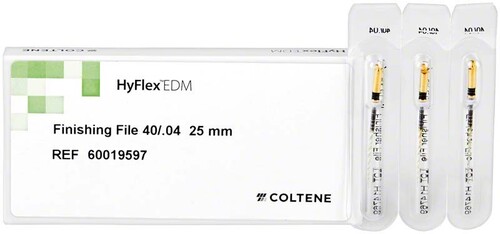 Maskinellt roterande finisheringsfilar av nickel-titan. Har en specialhärdad yta som gör dom extremt böjliga och hållbara samt har ett kontrollerat formminne som följer kanalens anatomi. Finisheringsfil 40/.04 vidgar den apikala delen av rotkanalen. Längd 25 mm.