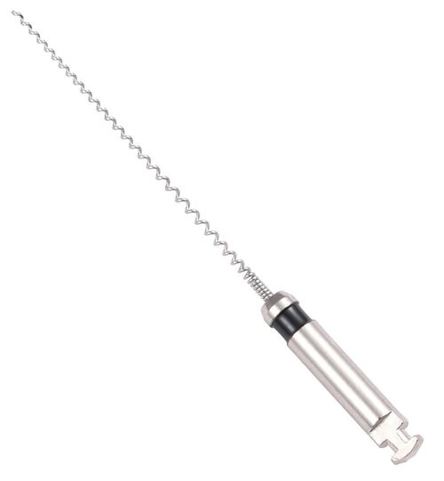 Färgkodade lentulonålar med säkerhetsspiral av rostfritt stål för vinkelstycke. För att applicera pasta, cement eller sealer i rotkanalen. Längd 21 mm, Nr 40 svart - grov.