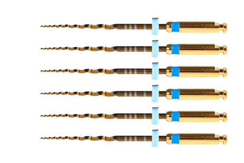 Guldfärgade maskinell roterande rotkanalsfil av värmebehandlad nickeltitan.