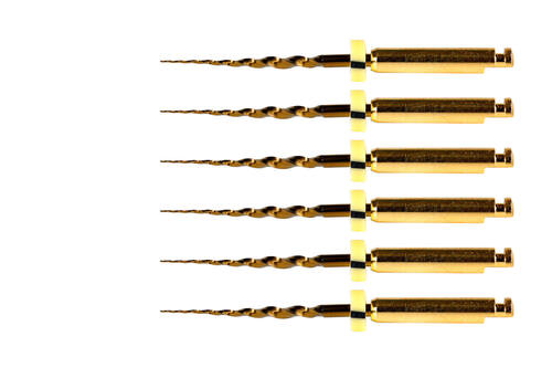 Guldfärgade maskinell roterande rotkanalsfil av värmebehandlad nickeltitan.