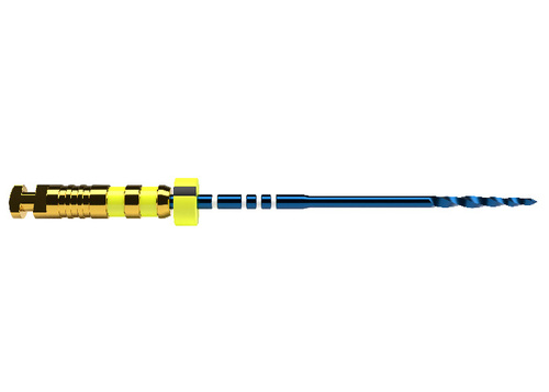 Steril blåfärgad roterande maskinell rotkanalsfil av värmebehandlad nickeltitan.