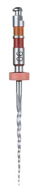 Taper .06, storlek 25, längd 23 mm, tillverkad i NiTi. Twisted File, TF, är en tvinnad fil som har ett triangulärt tvärsnitt,?varierad stigning och en rundad icke-skärande tip. R-Phase värmebehandlingsteknologi ger ökad flexibilitet. Twisted Files används tillsammans med ett nedväxlat roterande vinkelstycke på ca 500 rpm eller med Elements motor med reciprokerande rörelser.