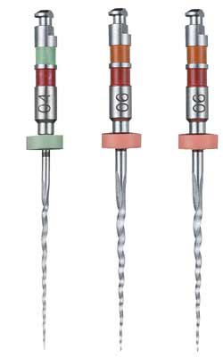 TF large apical assorted, sorterade storlekar 30/06, 35/.06, 40/.04, längd 23 mm, tillverkad i NiTi. Twisted File, TF, är en tvinnad fil som har ett triangulärt tvärsnitt,?varierad stigning och en rundad icke-skärande tip. R-Phase värmebehandlingsteknologi ger ökad flexibilitet. Twisted Files används tillsammans med ett nedväxlat roterande vinkelstycke på ca 500 rpm eller med Elements motor med reciprokerande rörelser.