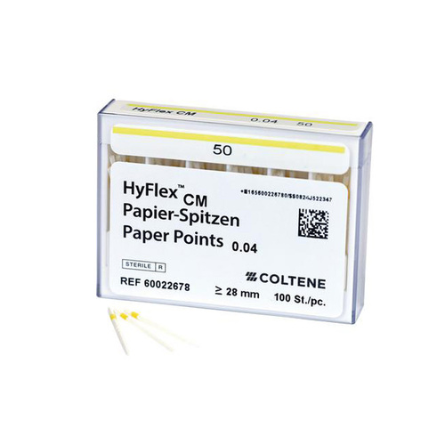 HyFlex CM absorberande pappersspetsar används för att torka rotkanaler som har förberetts med HyFlex CM-filar. Färgkodade för enkel identifiering. Längd: 28 mm. 100st/förp.