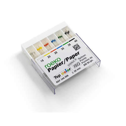 Vita pappersspetsar med färgkodad topp för lättare identifikation. Steriliserad, ISO-standardiserad.