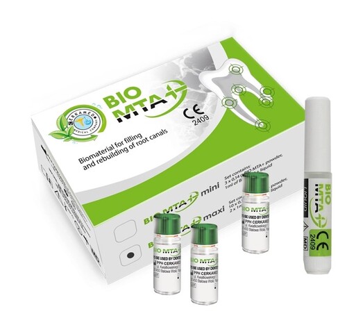 Cerkamed BIO MTA+ är ett biobaserat endodontiskt material utvecklat för fyllning och rekonstruktion i rotkanalsystemet där en plastisk, radiopak MTA-liknande lösning behövs för reparation och remineralisering.