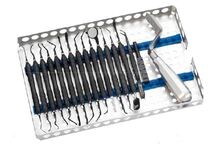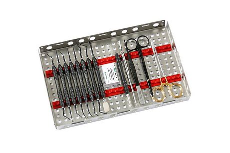 Innehåll: 9218 Mouth mirror handle6412-CC Micro mouth mirror Rhodium (Ø 3 mm), black frame, packing unit: 1 pc.7693 Scalpel balde holder TRINOVO®9220 Periosteal elevator PRICHARD9211 Excavator 33L9221 Curette LUCAS 859201 Explorer KX1, straight9202 Explorer KX2, angled9203 Micro plugger D19204 Micro plugger D29213 Filling spatula HEIDEMANN 15241-CC Pliers DE BAKEY6984 METZENBAUM MAGICUT® scissors, curved4583 Needle holder Micro-Vascular with TC inserts7609-RO Sterilisation tray