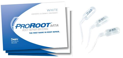 Portionsförpackat cement för reparation av rotkanaler vid retrograda fyllningar, perforationer, vid interna resorptioner och pulpaöverkappning. MTA (mineraloxiaggregat) består av hydrofila partiklar i pulverform som blandas och stelnar i kontakt med vatten.