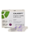 Calasept spolkanyler med öppningar på två sidor för effektiv irrigation under rotkanalsarbeten.