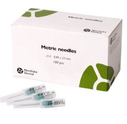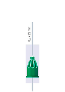 Tvärhuggen mm-gängad steril pastakanyl för Calasept Duraphat och Oraquix, 21G. Grön plastansats.