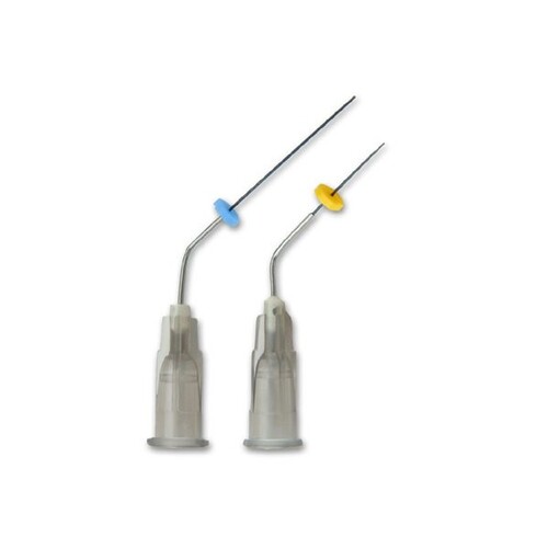 Spolkanyler i NiTi och rostfritt stål, med en diameter på 0,31 mm, längd 17 mm/25 mm Slitsad tip som riktar spoltrycket i sidled. Luerfattning. Autoklaverbara. 4 st långa och 2 st korta/fp.