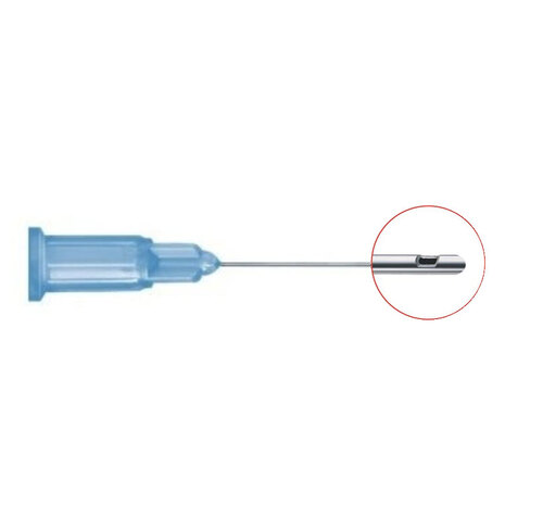Steril spolkanyl med sluten rundad ände och med spolning i sidan, luer-lock. För periodontal och endodontisk spolning. Storlek: 23G 0,63 x 25 mm. Färgkod: Ljusblå