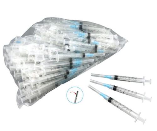Spolspruta med slitsad kanyl. Färgkodad för att minimera risken att blanda spollösningar.