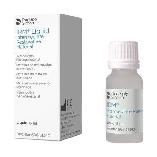 Eugenolbaserat temporärt fyllnadsmaterial. Vätska som blandas med IRM pulver för provisoriska fyllningar, hållbara upp till ett år. Ett polymerförstärkt zinkoxid-eugenolbaserat fyllningsmaterial.