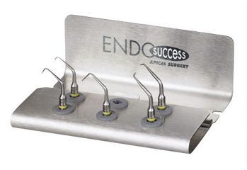 EndoSuccess Apical Surgery ultraljudsspetsar är avsedda för kirurgisk endodontisk behandling. Detta koncept för mikroapikal kirurgi, kallat 3-6-9, är exklusivt för Satelec och följer den nuvarande trenden mot minimalt invasiva kirurgiska tekniker. Setet består av fem instrument, alla utformade för att hantera olika anatomiska konfigurationer. Tillsammans med en ny diamantbeläggning som förbättrar instrumentens effektivitet möjliggör dessa spetsar inte bara en mer exakt och bättre kontrollerad retroendodontisk behandling, utan bevarar också mer ben och tandvävnad. Rotkanalen bevaras, även om infektionen behandlas vid sitt ursprung i kanalsystemet.