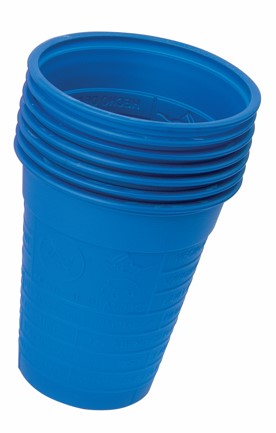 Komposterbar blå bägare i biologisk polymer, biologiskt nedbrytbar plast på majsstärkelsebasis. 200 ml.