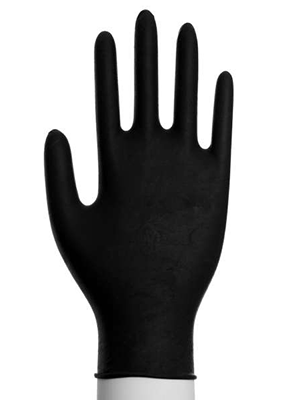 Undersökningshandske, svart, nitril, puderfri, elastisk extra mjuk.