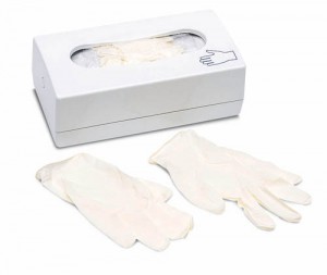 Vit hållare av ABS plast för handskar som kan monteras på vägg för 1 ask handskar.