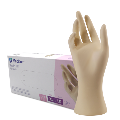 Puderfria latexhandskar med räfflade fingertoppar för bättre grepp. Återfuktande med E-vitamin och lanolin.