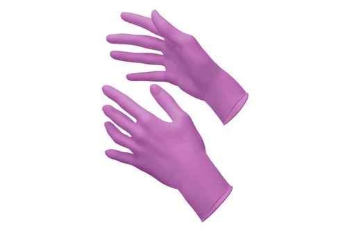 Rosa puderfri undersöknings- och skyddshandske av nitril för engångsbruk. En elastisk och smidig handske med rullkant samt mikro texturerade fingertoppar. Längd 240 mm. Storlek: Small. AQL1,5.
