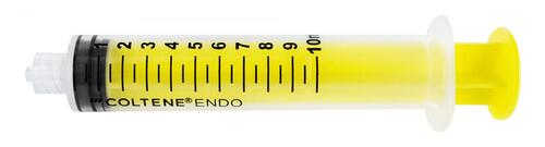 Latexfri spolspruta med luer-lock fattning. Färgkodning underlättar identifikation av vätska, om flera vätskor används vid samma behandling. Passar för Canalpro syringefill station.