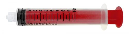 Latexfri spolspruta med luer-lock fattning. Färgkodning underlättar identifikation av vätska, om flera vätskor används vid samma behandling. Passar för Canalpro syringefill station.