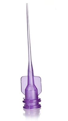 Lång flexibel konformad tunn spets i plast som används till Luer Vacuum adapter för borttagning av fukt i rotkanaler. Luer-Lock fattning, 0,36 mm. Lila.