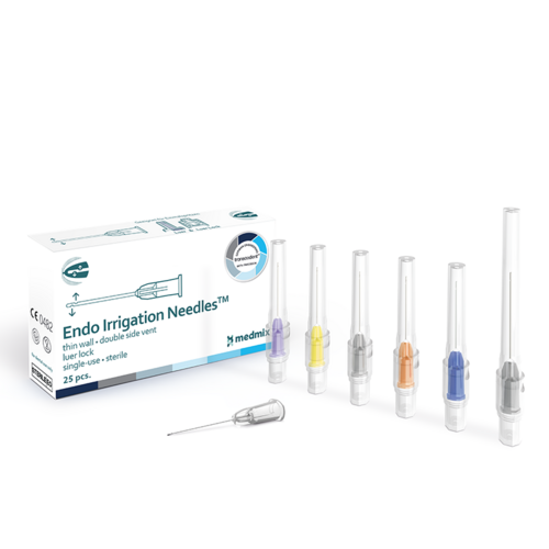Spolkanyl endo med två laterala öppningar och rundad ände för mild men effektiv spolning av rotkanalen.