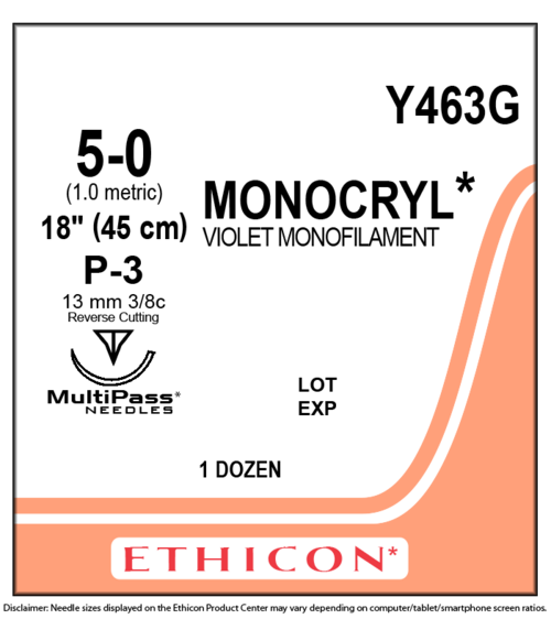 MONOCRYL™ Suture från Ethicon är en mycket böjlig monofilamentsutur som lätt kan hanteras och knytas, är praktiskt taget inert i vävnaden och absorberas förutsägbart. Hög initial draghållfasthet ger sårstöd i 3 veckor postoperativt.
