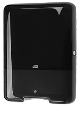 Snygg dispenser i plast för C-vikta handdukar. Enkel och praktisk. Lätt att fylla på. Dispenserhuven öppnas i sidled.