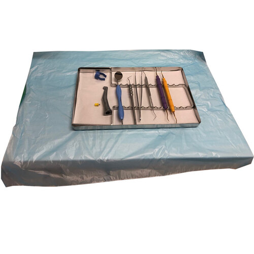 Med en rejäl storlek på 50X50cm fungerar det utmärkt att vika servetten över instrumentbrickans kanter även på bricka ansluten till bryggan på behandlingsenheten