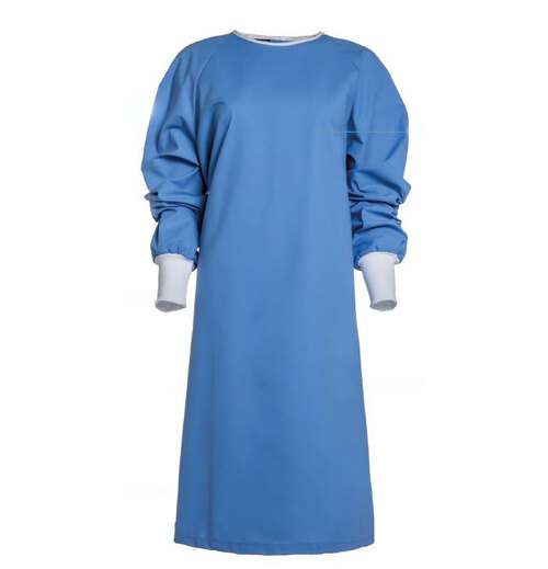 Skyddsrock med lång ärm, unisex. Knäpps bak med tryckknappar. Vit mudd, 10 cm, i ärmslut.