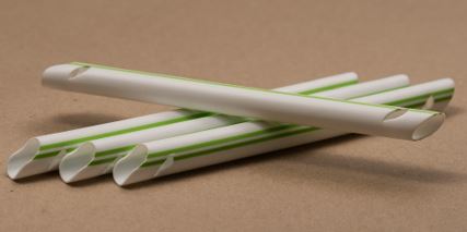 Rakt aspiratorrör med dubbla ventilationshål, S-klippt i ena änden och 45 graders snedskuret i andra änden. Vit med gröna ränder. Tillverkad i biobaserad fossilfri polyeten, grön PE. Avsedd för engångsbruk.