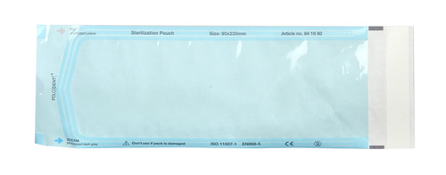 Steriliseringspåsar med dubbla färgindikatorer som svarar på alla variabler: tid, temperatur och mättad ånga. Trippeltätade sidor. Den breda självförslutande remsan på påsen ger en pålitlig försegling tills påsen öppnas.