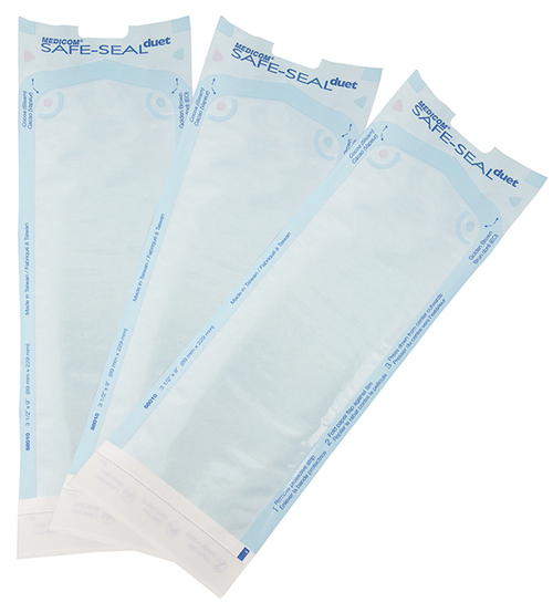 Självförslutande Safe-Seal Duet Sterilization 305 x 432 mm, 200st/fp. Säker sterilisering med en inre multivariabel indikator och en extern process som indikerar för ångsterilisering. Uppfyller CDC riktlinjer för effektiv sterilisering och svarar på alla variabler: tid, temperatur och mättad ånga. Blå.