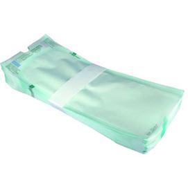 Färdigklippta sterilpåsar av papper/plast för packning av instrument vid autoklavering.
